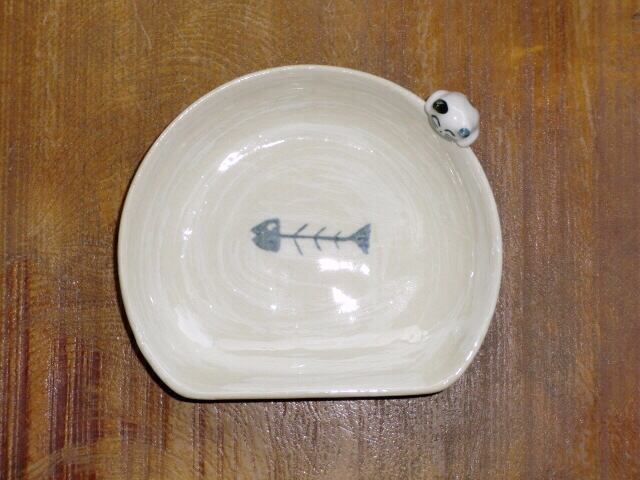 愛くるしいネコが魚の骨を狙っているユニークなデザイン。