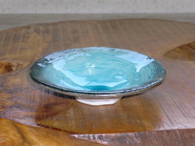 渕部分の黒の釉薬と、トルコブルーの釉薬のコントラストが抜群な深小皿です。