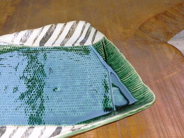 角皿 盛皿 手描き 織部ストライプ7.0正角皿