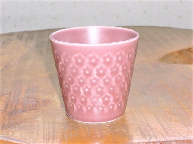 表面はマットな質感で、花の模様が刻印されたデザインです。