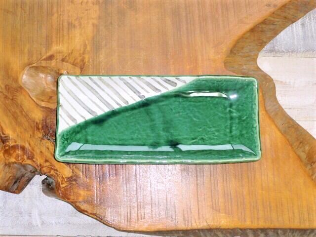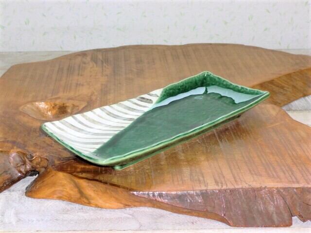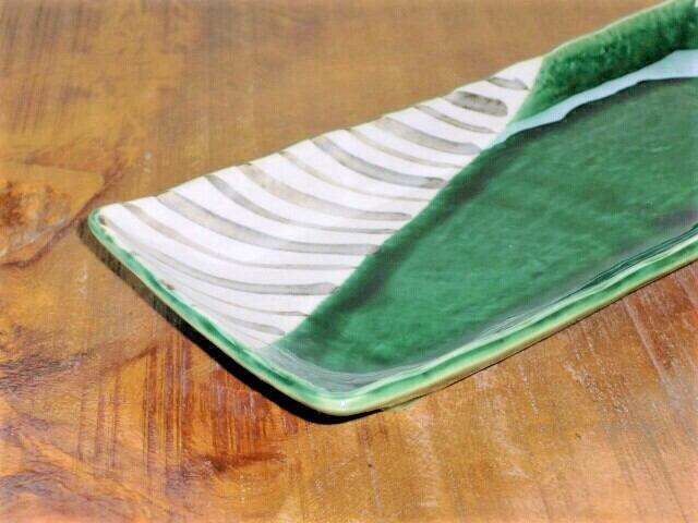 長角皿 刺身皿 織部ストライプ長角サンマ皿